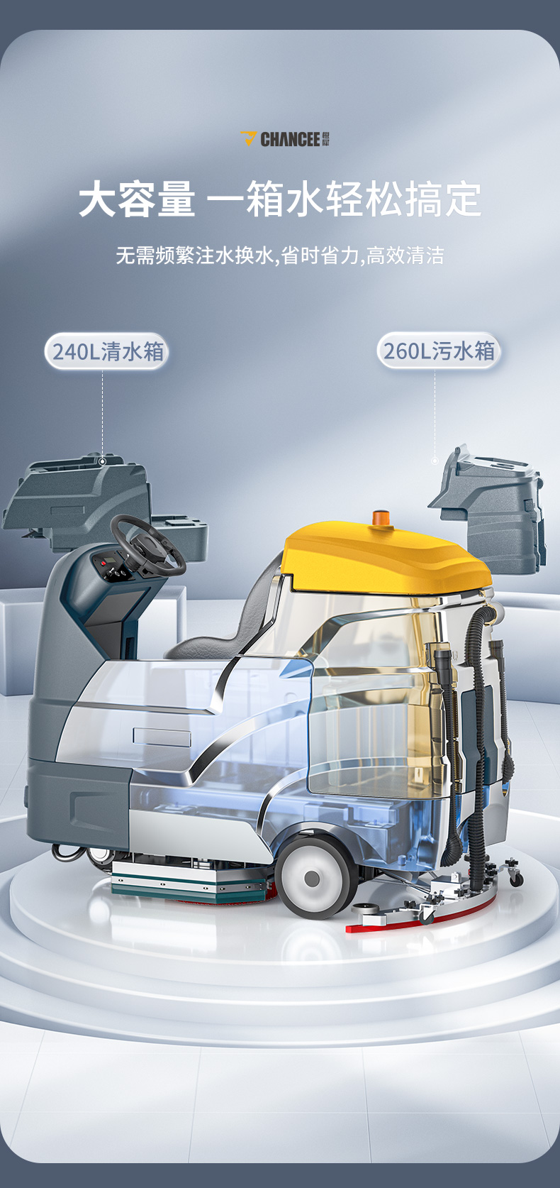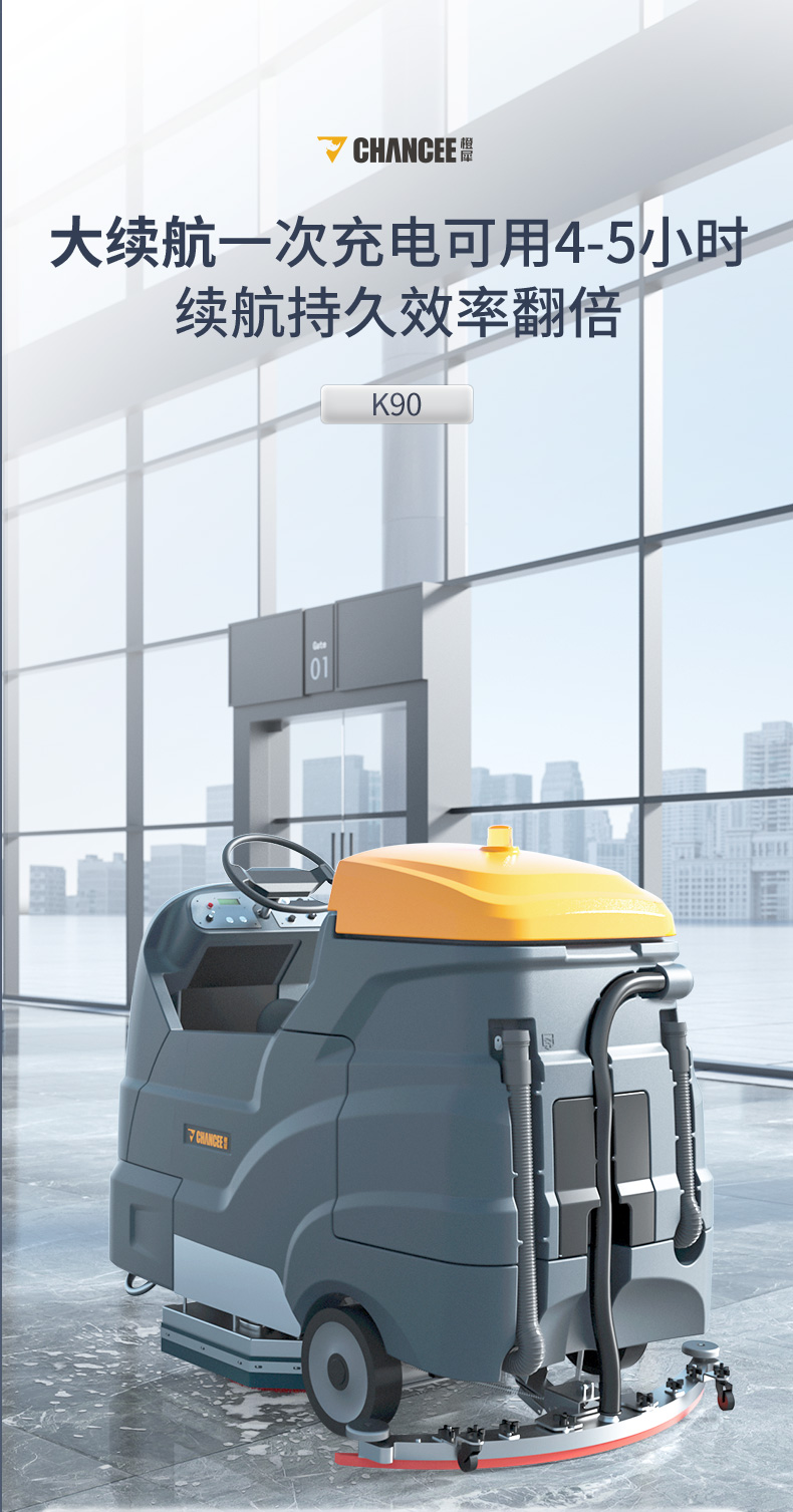 橙犀K90 駕駛式洗地機(jī):工商業(yè)全自動(dòng)洗地機(jī),大容量水箱讓你免去翻去傾倒的煩惱,更加的省時(shí)省力,同時(shí)也更加的高效,快捷清潔地面污漬。續(xù)航持久,一次充電可以使用4-5h左右,更加持久耐用。