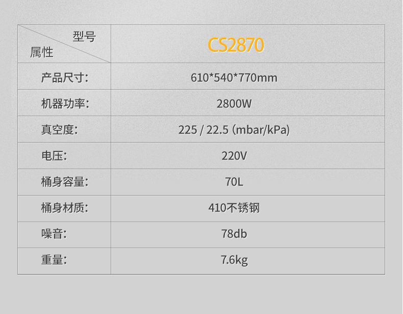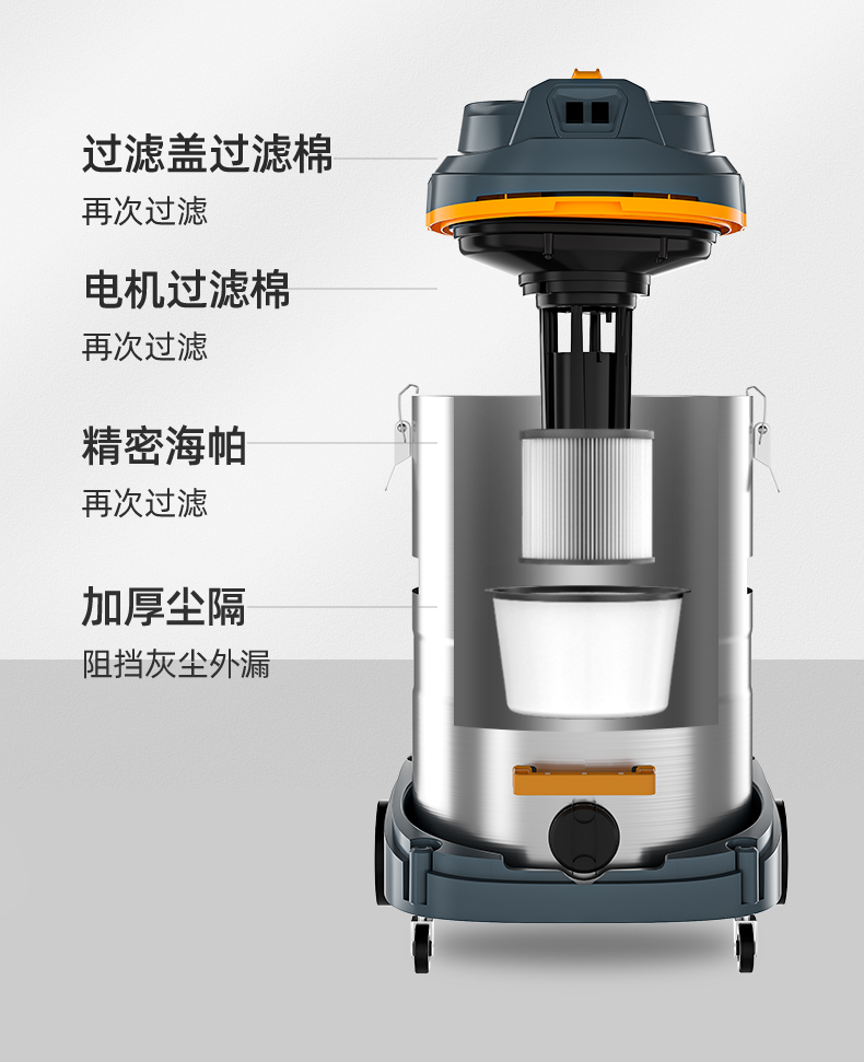 橙犀吸塵器 CS-2870:2800w打容量,商用超大吸力,多層過濾系統(tǒng),智能泄壓閥,可以干濕兩用,臟污一機搞定,高效強勁大功率電機,配置抗扭軟管,不變形可以反復伸縮